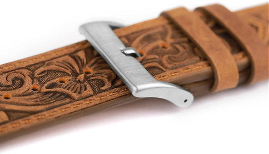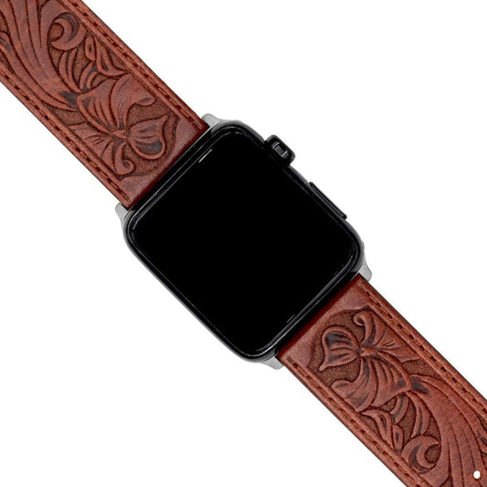 For Apple Watch Band 45Mm 44Mm 42Mm 41Mm 40Mm 38Mm, Carved Handmade Bump Retro Genuine Leather Flower Replacement Strap for Men Women Brown Bracelet for Iwatch Series 7 6 5 SE 4 3 2 1