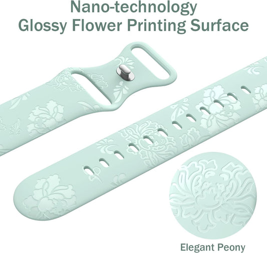 5 Pack Flower Engraved Silicone Band Compatible with Apple Watch Band 42Mm 44Mm 45Mm 47Mm, Elegant Peony Fancy Designer Sport Women Band Replacement for Iwatch Series 8 7 6 5 4 3 2 1 SE