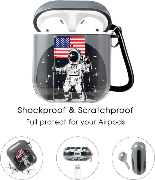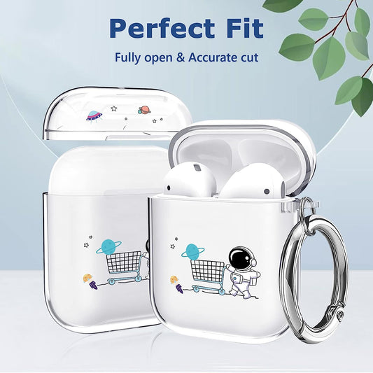 For Clear Airpods 2Nd 1St Generation Case Cool Cute Kawaii Space Astronaut Planet Design for Girl Boys Soft Replacement Case with Keychain Full Body Protection Cover for Apple Airpod 2&1 Charging Case