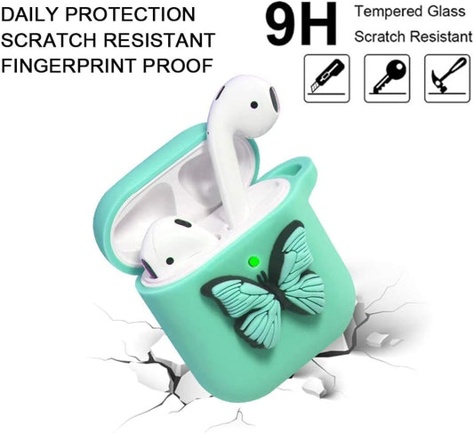 Heniu for Airpod Case, 3D Butterfly Silicone Airpods Case Cute Cover with Keychain Compatible for Apple Airpods 2&1 Charging Case-Lake Green