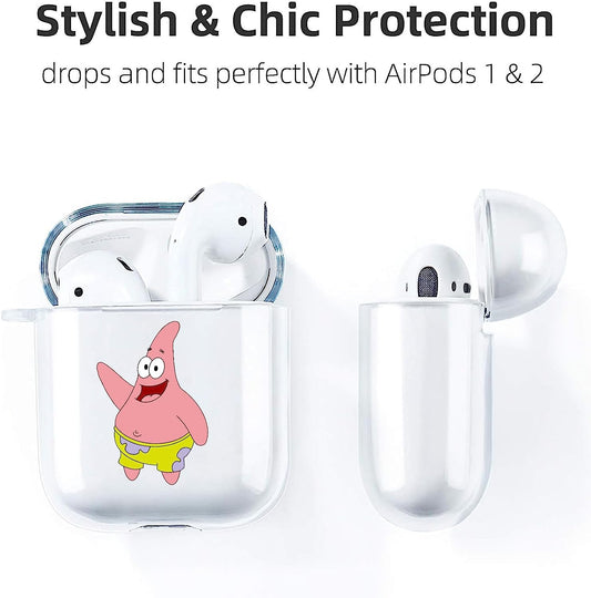 Eokruw[2Pcs] Compatible for Airpods 1&2 Case,Cute Cartoon Characters Soft Clear TPU Case,Stylish Unique Fun Funy Design,With Keychain for Airpods 2/1 Cover Cases, for Boys Girls Youth Teen(Spongebo)