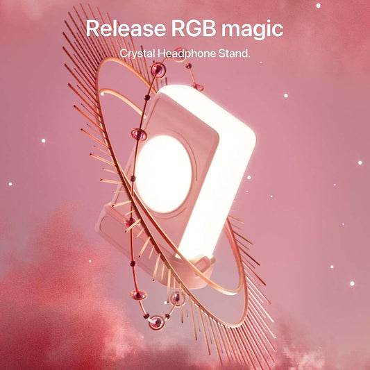 Yowu Crystal Headphone Stand - 3 in 1 Multiport Dock Headest Stand with 10 Magical Light Modes - RGB Headphone Holder for Desk.Compatible with Airpods Max,Etc