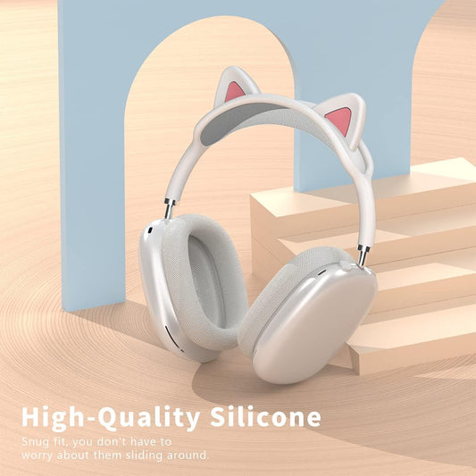WQNIDE Headband Cover for Airpods Max, Cute Cat Ears Design Soft Silicone Headphone Headband Protectors/Comfort Cushion/Top Pad Protector Sleeve Compatible with Apple Airpods Max (White)