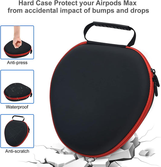Airpods Max Case Hard Carrying Case for New Airpods Max Portable Storage Bag with Mesh Pocket for Airpods Max Accessories (Black + Red)