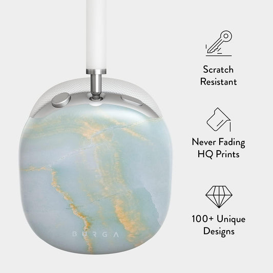 Burga Airpod Hardcase Compatible with Apple Airpods MAX Case, Sky Blue Mint Green Gold Dusts Marble Turquoise Azure Ocean Cute Case for Women, Protective Hard Plastic Case Cover