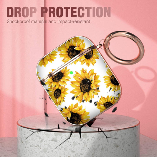 Maxjoy for Airpods Case Cover, Sunflower Flower Cute Air Pod 2 Case for Women Hard Protective Ipods Cover with Keychain for Airpod 2Nd 1St Generation Wireless Charging Case, Floral
