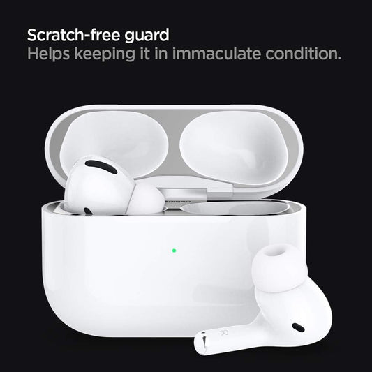Spigen Shine Shield Designed for Airpods Pro 2Nd Generation (2022) and Airpods Pro (2019) anti Dust Sticker [2 Sets] - Metallic Silver