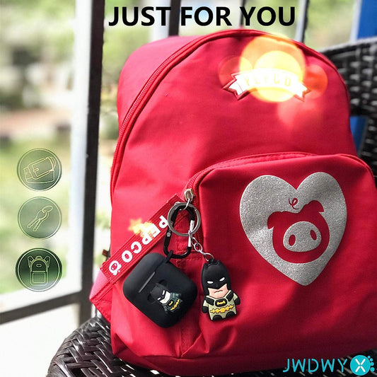 Batman Silicone Cute Cartoon Case for Apple Airpod 1/2, 9 in 1 Accessories Set Protective Cover, Silicone Case/Keychain/Carabiner/Metal Dust Sticker/Cleaning Brush/Anti-Lost Rope,The Best Gift