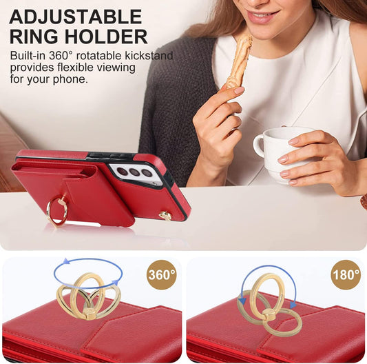 YYTVN for Samsung Galaxy S21 plus Case 5G 6.7 Inch, Minimalist Wallet Case with Ring Kickstand and Shoulder Strap, Shockproof Stylish Protective Cover for Galaxy S21 plus -Red