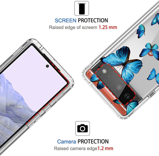 Zoeirc Case for Pixel 6 Pro Case,Pixel 6 XL G8VOU Case, Soft 360 Full Body Shockproof Bumper Crystal Clear Case Cover for Google Pixel 6 Pro 5G (Blue Butterfly)