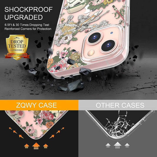 ZTOFERA Compatible with Iphone 13 Case for Girls Women, Floral Flower Pattern Design Silicone Case, Slim Shockproof TPU Protective Bumper Case Cover for Iphone 13,Beige