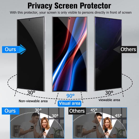 [2+2 Pack] Galaxy S22 Ultra Privacy Screen Protector, 9H Tempered Glass, Ultrasonic Fingerprint Support, 3D Curved, HD Clear Anti-Spy Film for Samsung S22 Ultra 5G Glass Screen Protector
