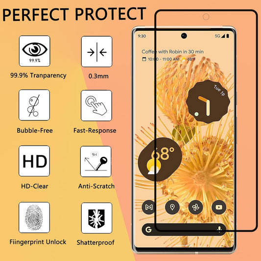 [2+2 Pack] for Google Pixel 6 Pro Screen Protector, 9H Tempered Glass, Ultrasonic Fingerprint Compatible, 3D Curved, HD Clear Scratch Resistant 5G Glass Protector