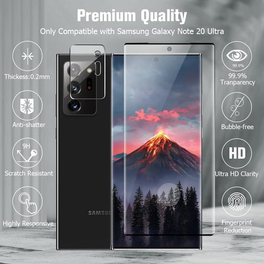 [2+2 Pack] Galaxy Note 20 Ultra Screen Protector Include 2 Pack Tempered Glass Screen Protector + 2 Pack Tempered Glass Camera Lens Protector,Easy Install,3D Curved for Samsung Galaxy Note 20 Ultra 5G