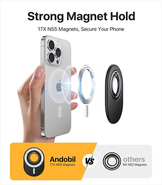 [2023 Newest] Andobil Easyfly Magnetic Phone Grip [Strongest Magnet Power] Gym Cell Phone Finger Ring Holder Compatible with Magsafe Iphone 14 Pro Max 14 13 12, Rotate Kickstand, Carbon Fiber Design