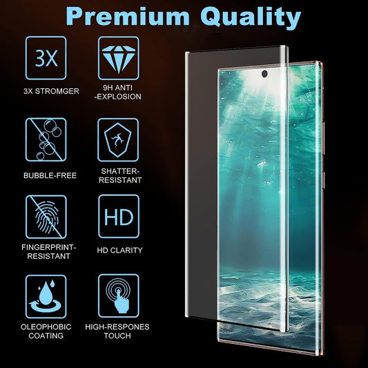 [2+2 Pack] Galaxy S22 Ultra Screen Protector, 9H Tempered Glass, Ultrasonic Fingerprint Support, 3D Curved, HD Clear Scratch Resistant for Samsung Galaxy S22 Ultra 5G Glass Screen Protector