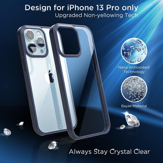 [2023 New] for Iphone 13 Pro Case Clear, [Non-Yellowing] [Military Drop Protection] Shockproof Bumper Slim Fit Phone Case Thin Cover for Apple 13Pro (6.1 In, Clear-Navy Blue)