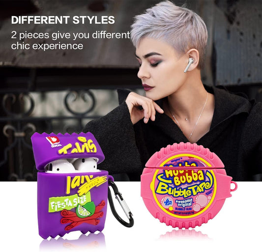 [2Pack] Airpods 2&1 Case, Soft Silicone Takis Potato Chips+Bubba Candy Case, 3D Cute Funny Fun Cartoon Kawaii Food Fashion Airpod Cover with Keychain, Airpod Skin Accessories for Kids Teens Boys Girls
