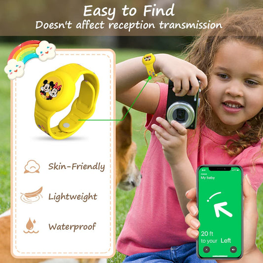 [2Pack] Airtag Kids Bracelet, Cartoon Wristband Adjustable Hidden Watch Band Air Tag Holder for Apple Air Tag, Cute Soft Silicone Anti-Lost Waterproof Case (Blue+Yellow)
