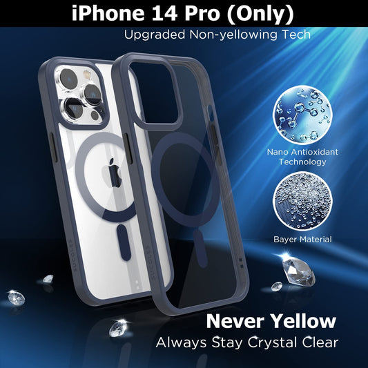 [2023 New] for Iphone 14 Pro Case with Magsafe, [Strong Magnet] [Non-Yellowing] [Military Grade Protection] Magnetic Slim Fit Bumper Mag Safe Thin Phone Cover for (Apple 14Pro, Clear Blue)
