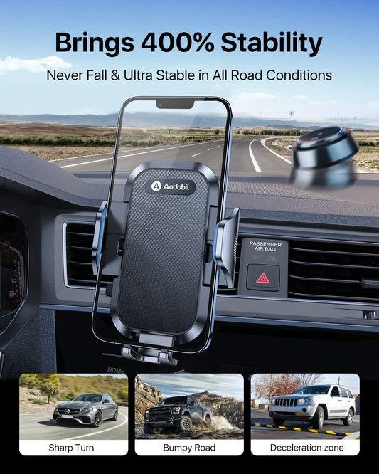 (2023 Upgraded) Andobil Car Phone Mount [Military Sturdy, Firmly Grip & Never Slip] Air Vent Cell Phone Holder Car, Ultra Stable, Easy Used, Compatible with Iphone 13 14 12 Pro Max Android Samsung S23