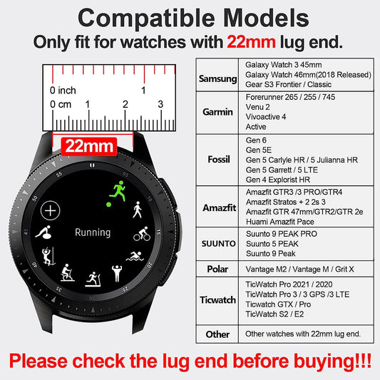 22Mm Galaxy Watch 3 45Mm Band,Soft Silicone Galaxy Watch 46Mm Bands Compatible for Samsung Gear S3 Frontier & Classic/Garmin Venu 2/Forerunner 255/ Forerunner 745/Vivoactive 4 Wristband for Men Women