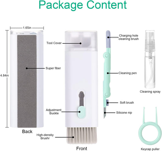 7 in 1 Electronic Cleaner Kit, Multifunction Keyboard Brush, Portable Computer Cleaner Kit with 3 in 1 Airpods Cleaner Pen, Keyboard Brush, Keycap Buckle, Spray Bottle and Screen Cleaning Flannelette
