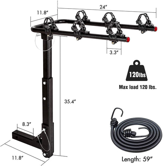 AA Products 3 Bike Rack Platform Hitch Mount Rack Foldable Bicycle Rack for Cars, Trucks, Suv'S and Minivans, Fits 2'' Hitch Receiver