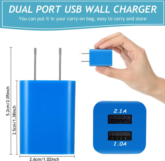 12 Pieces Dual Port USB Wall Charger USB Charger Adapter Quick Charger Cube 2.1A USB Charger Wall Plug Charging Block Replacement for Most Smartphones and Tablets (Multiple Colors)