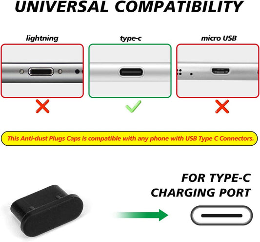 10X USB-C anti Dust Plugs Compatible with Samsung Galaxy S23, S22,S21,S20,S10, plus S10, S9, S8, Note 9, 20, Pixel, Any Type C Port on Smartphone or Macbook Laptop|Silicone Headphone Jack Plug,Black