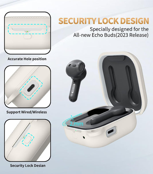 Protective Case for Echo Buds 2023, Soft Silicone Shockproof Protective Case Skin for Echo Buds 2, Wireless Earphone Charging Box Cover