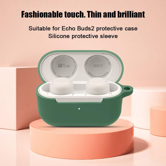 Antetek Compatible for Echo Buds 2 Wireless Earbuds Case with Keychain,Silicone Protective Cover Accessories Compatible with Echo Buds 2 Generation (Dark Green)