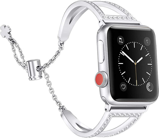 Secbolt Bling Bands Compatible with Apple Watch Bands 38Mm 40Mm 41Mm 42Mm 44Mm 45Mm Iwatch Series 8/7/6/5/4/3/2/1/SE, Women Dressy Metal Jewelry Bracelet Bangle Wristband Stainless Steel