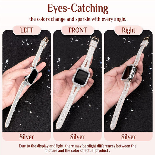 Goton Bling Band +Case for Apple Watch Bands 45Mm 44Mm 41Mm 40Mm 38Mm Series 8 7 SE 6 5 4 3 2 1, Women Glitter Silicone Thin Strap + Bumper Cover Designed for Iwatch Accessories