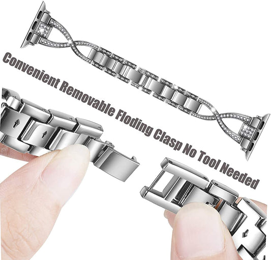 Missair Compatible with Apple Watch Band 38Mm 40Mm 41Mm 42Mm 44Mm 45Mm Series 8 7 6 5 4 3 2 1 SE, Women Diamond Bling Bracelet Jewelry Metal Replacement Wristband Strap for Iwatch