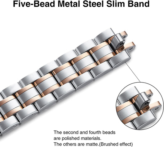 STIROLL Thin Replacement Band Compatible for Apple Watch 38Mm 40Mm 41Mm 42Mm 44Mm 45Mm 49Mm, Stainless Steel Metal Wristband Women Men for Iwatch Ultra SE Series 8/7/6/5/4/3/2/1(Silver+Rose Gold)