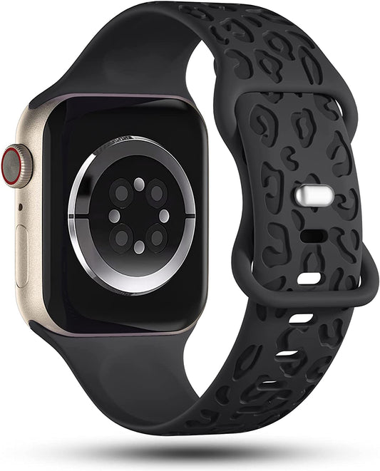 Creategreat Engraved Bands Compatible with Apple Watch Band 45Mm 44Mm 42Mm 41Mm 40Mm 38Mm, Leopard Flower Boho Pattern Soft Silicone Strap Compatible with Iwatch Series 8 7 6 5 4 3 2 1 SE, Women Men