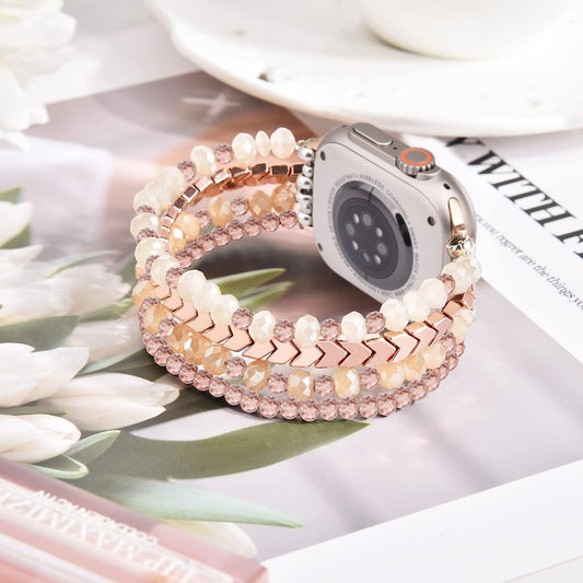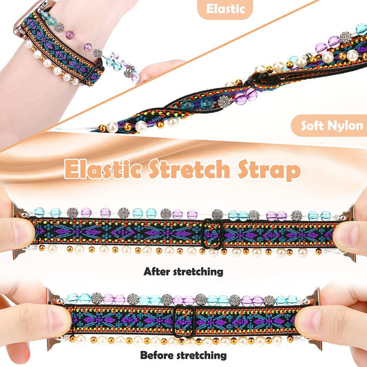 MOFREE Beaded Bracelet Compatible for Apple Watch Band 38Mm 40Mm 41Mm 42Mm 44Mm 45Mm Women,Fashion Handmade Elastic Stretch Strap for Iwatch Series SE 8 7 6 5 4 3 2 1