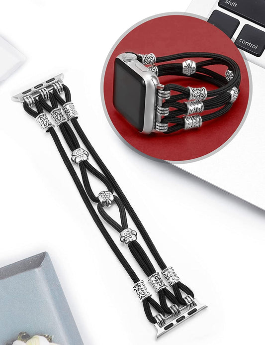 TOYOUTHS Beaded Bracelet Compatible with Apple Watch Band 38Mm 40Mm 41Mm Women, Premium Braided Nylon Elastic Stretchy Boho Cute Fancy Charms Solo Loop Strap for Iwatch Series 8/SE/7/6/5/4/3/2/1, M