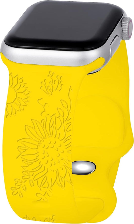 Compatible with Apple Watch Bands 38Mm 40Mm 41Mm 42Mm 44Mm 45Mm,Unique Flower Engraved Watch Band for Iwatch Series 7 6 5 4 3 2 1 SE Women Men
