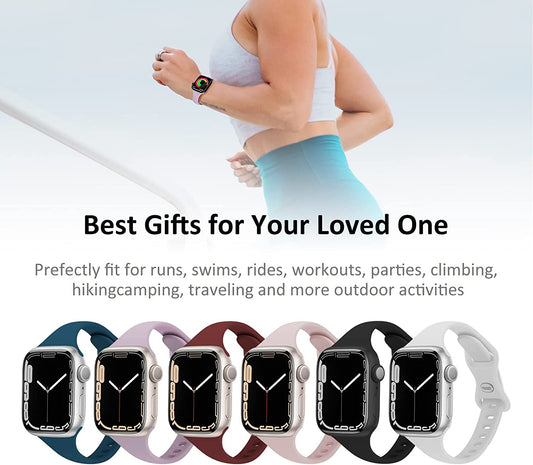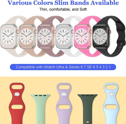 Slimband 6 Pack Slim Silicone Bands Compatible for Apple Watch Band 38Mm 40Mm 41Mm 42Mm 44Mm 45Mm 49Mm, Narrow Replacement Strap Thin Wristband for Iwatch Ultra Series 8/SE/7/6/5/4/3/2/1 Women Men