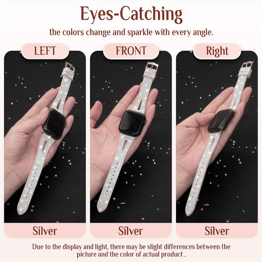 Goton Bling Silicone Band for Apple Watch Bands 49Mm 45Mm 44Mm 42Mm 41Mm 40Mm 38Mm Ultra Ultra2 Series 9 8 7 6 5 4 3 2 1 SE Women, Glitter Strap Accessories Designed for Iwatch All Series