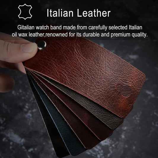 Gitalian Italian Leather Band Compatible with Apple Watch Band 49Mm 45Mm 44Mm 42Mm for Men, Genuine Leather Replacement Strap for Iwatch Ultra2/1 Series 9 8 7 6 5 SE2, Retro Blue
