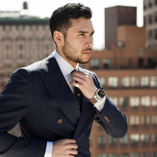 Genuine Leather Band Compatible with Apple Watch Ultra 2/Ultra Band 49Mm 45Mm 44Mm 42Mm for Men Women, Rugged Strap with Stainless Steel Connectors for Iwatch Ultra Series SE 9 8 7 6 5 4 3