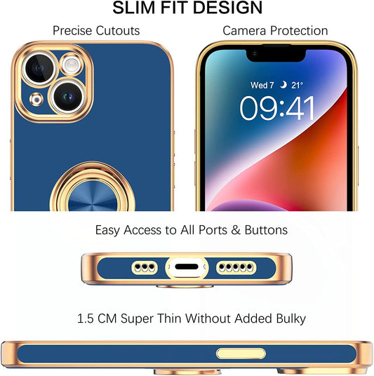 VENINGO Iphone 14 Case,Phone Cases for Iphone 14,Slim Fit Soft 360° Ring Holder Kickstand Magnetic Car Mount Supported Easy Clean Shockproof Protective Cover for Apple Iphone 14 6.1" 2022, Deep Blue