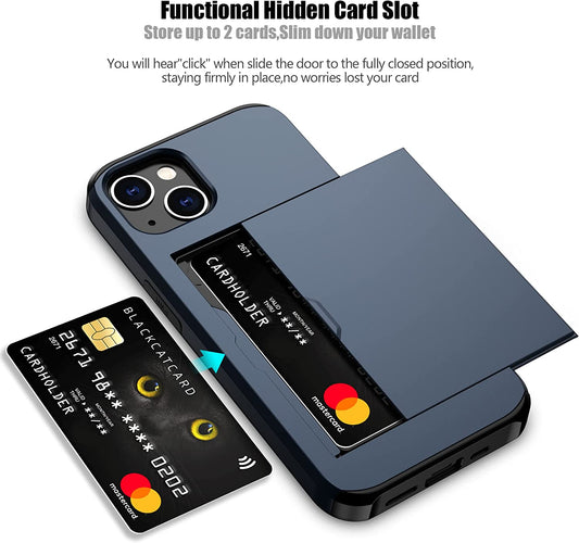 Nvollnoe for Iphone 14 Case with Card Holder Heavy Duty Protective Dual Layer Shockproof Hidden Card Slot Slim Wallet Case for Iphone 14 for Women&Men(Blue)