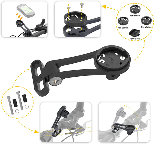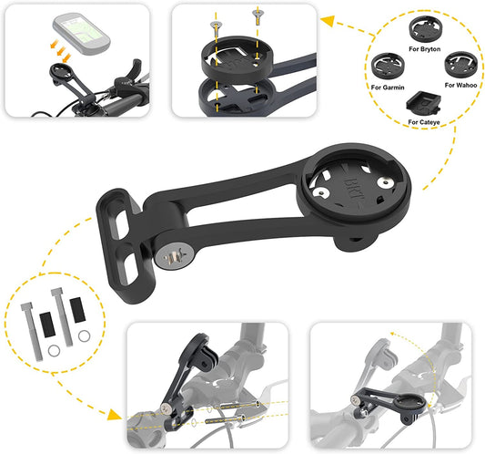 Garmin Edge Wahoo Bike Mount - Out Front Adjustable Bicycle Computer Mount, Extended Mountain Bike Accessories for 38Mm Handlebar, Cycling Phone Bike Light Sports Action Camera Combo Mount (Black)