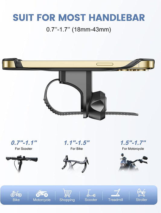 Ibytoc Bike Phone Mount, 360° Rotation Phone Holder for Bike, Universal Silicone Motorcycle Phone Mount, Compatible with Iphone 14 plus 13 Pro Max 12 Pro 11 XR XS 8 7 6 plus 5S, Samsung (4.7"-6.7")