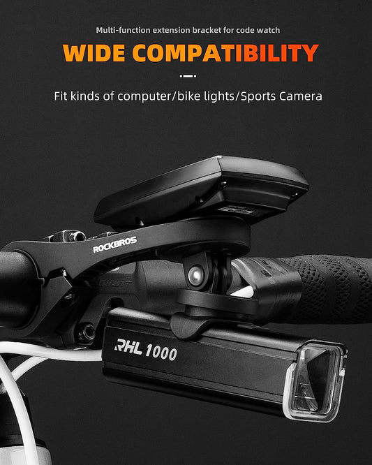 ROCKBROS Bike Computer Mount Out Front Bike Computer Mount Compatible with Garmin Igpsport XOSS - Extend Mount Adapter Camera and Light, Nylon Lightweight Arm Non-Slip - Fit 31.8Mm Handlebar
