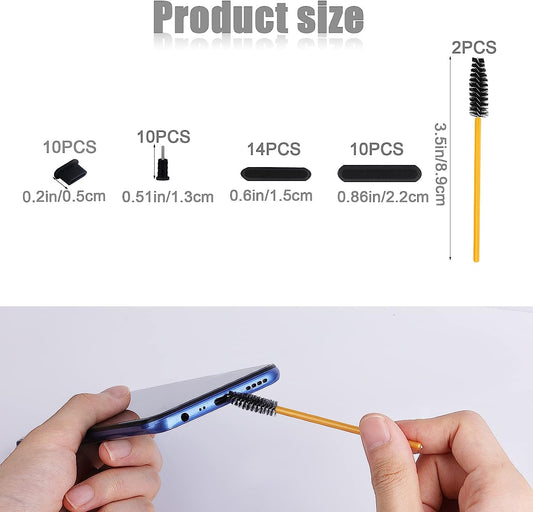 SAVITA 46Pcs anti Dust Kit, USB C Dust Plugs Port Protector Caps Earphone Jack Plug Cover Dustproof Sticker Phone Speaker Plug with Cleaning Brushes for Most Type-C Smartphones and Tablets
